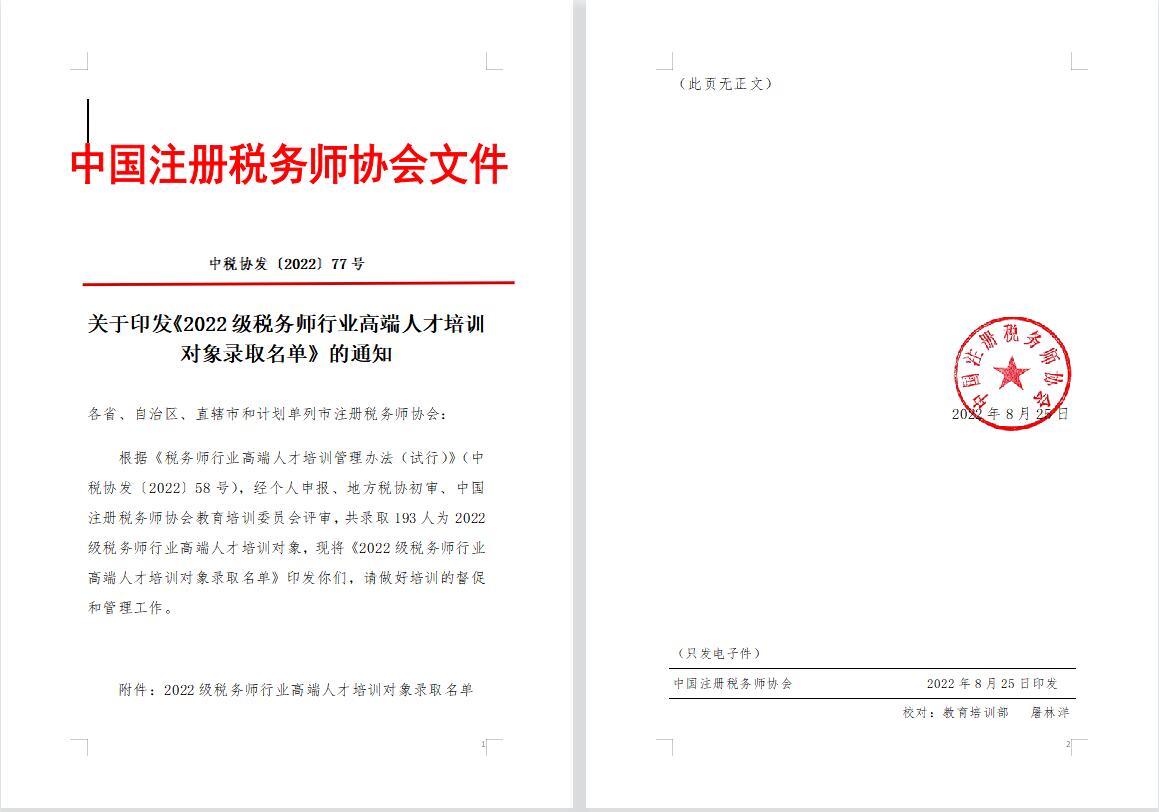 2022级中国注册税务师行业高端人才培训录取名单,我所李晓梅上榜