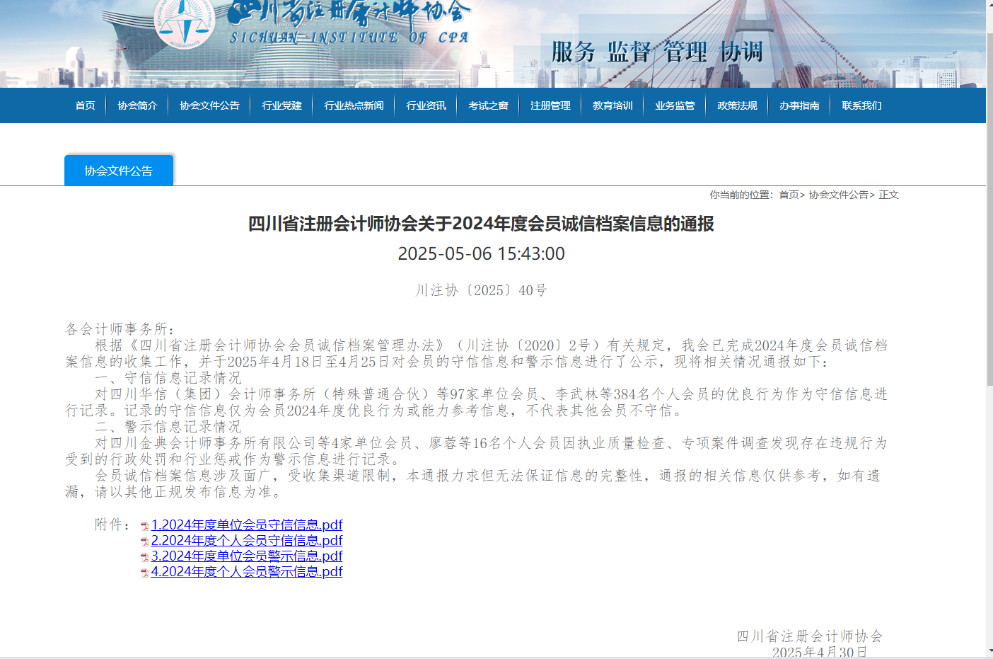 自四川省注册会计师协会于2020年公布会员诚信档案信息以来,我所连续五年均有优良行为记载