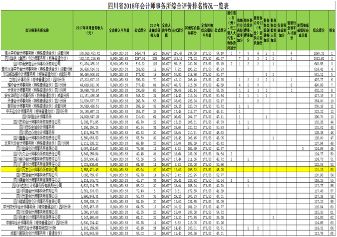 我所在省注协2018年度会计师事务所综合排名中位列第53名
