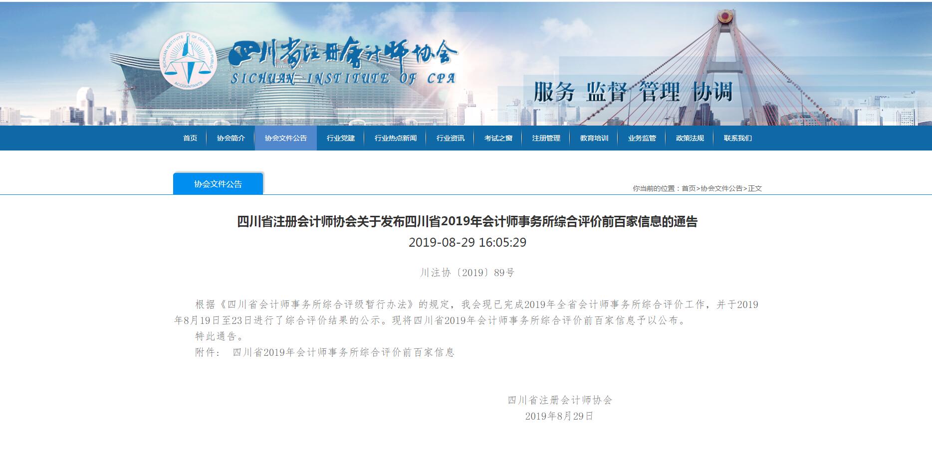热烈祝贺我所进入四川省2019年会计师事务所综合评价前50强