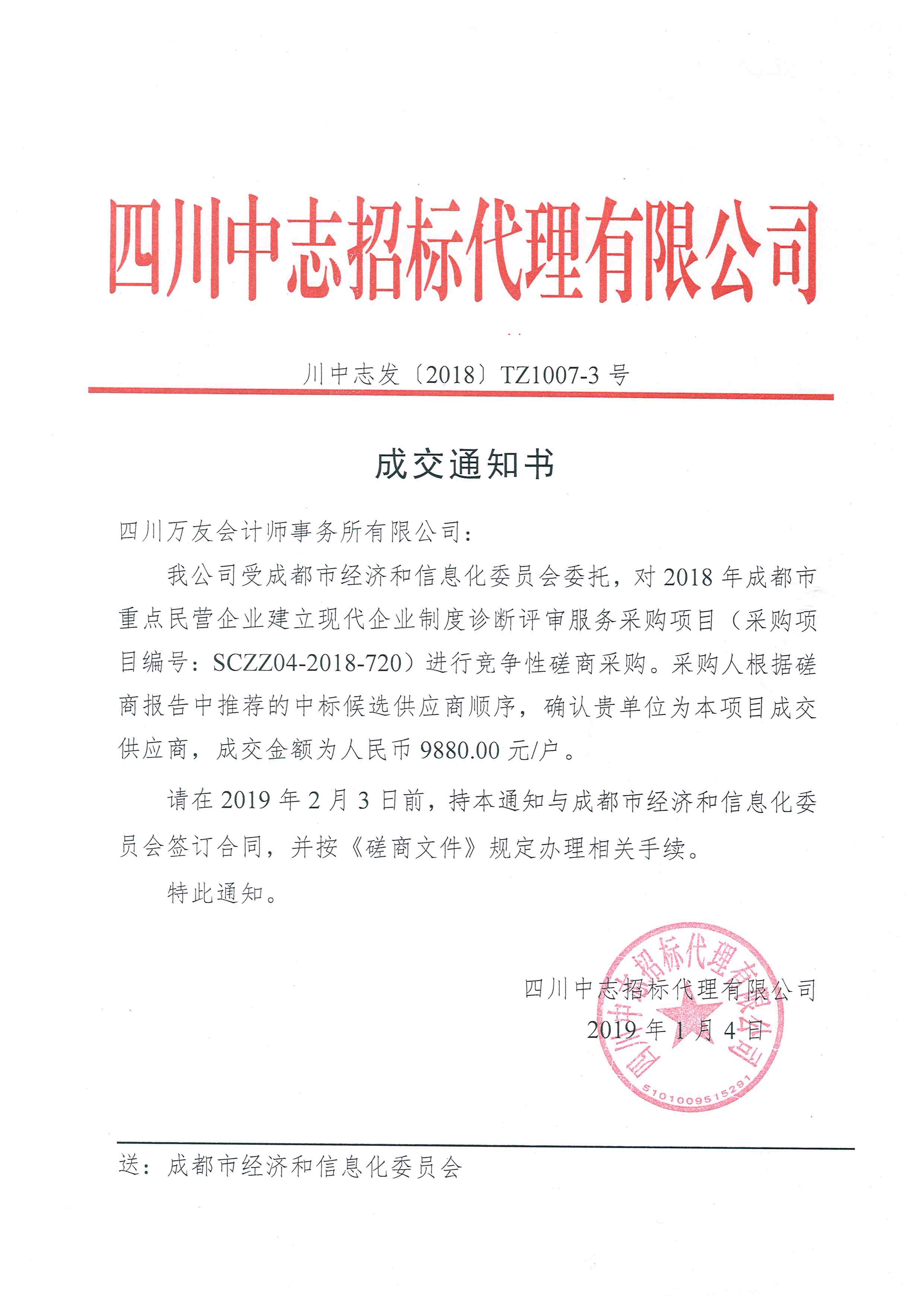 2019年1月4日,四川万友会计师事务所有限公司入围成都市经济和信息化委员会