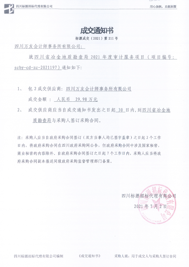 2021年4月,我公司中选“成都硕源物业公司等企业代理记账服务项目”